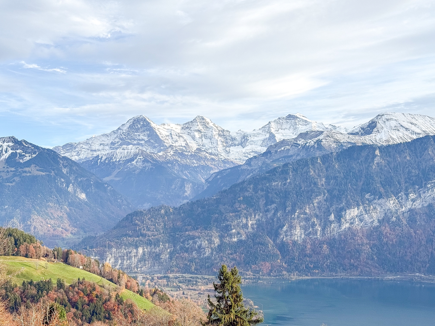 | … … a stunning panorama | Beatenberg: A sunny terrace with a magnificent view of the three world-famous mountains Eiger, Mönch and Jungfrau and Lake Thun. |