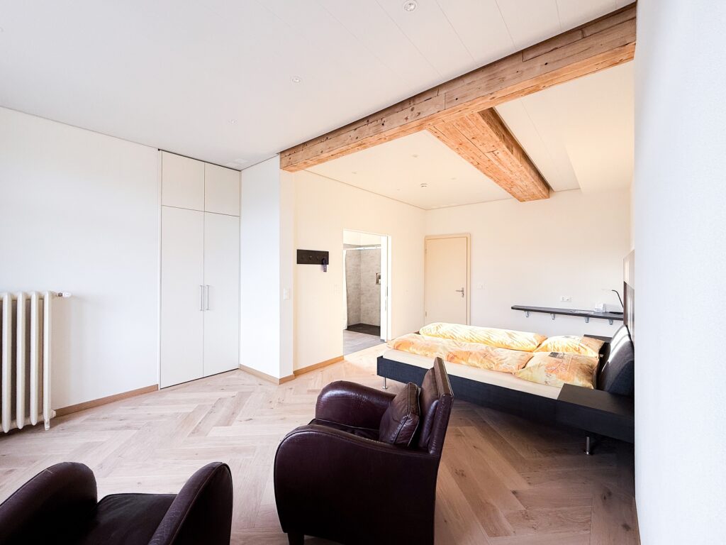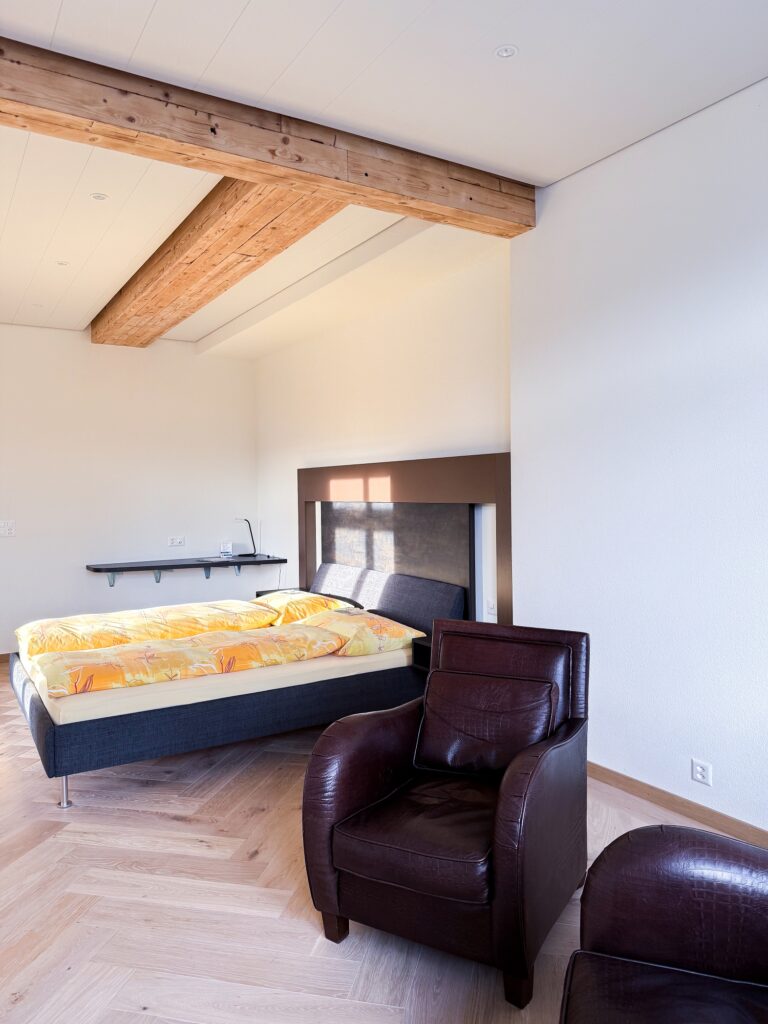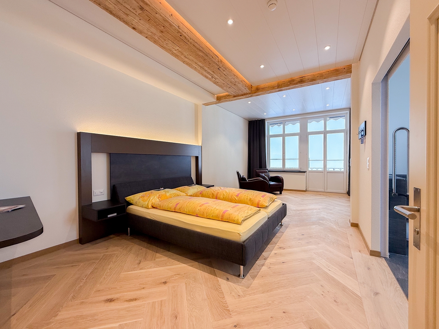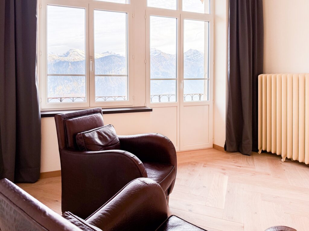 Spacious room (35 m²) with balcony and unique views of Lake Thun and the Bernese Alps.