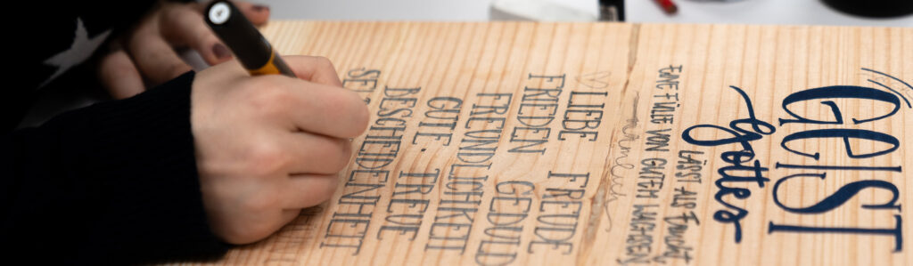 In Zusammenarbeit mit dem Bibellesebund bieten wir kreative Workshops: Berge malen oder Biblelettering