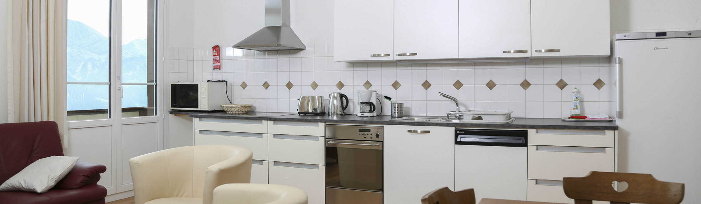 Die Ferienwohnungen sind mit einer gut eingerichteten Küche ausgestattet. Falls Sie die Vorteile einer Wohnung geniessen, aber dennoch nicht selbst kochen möchten, bedienen wir Sie gerne bei uns im Gästehaus.