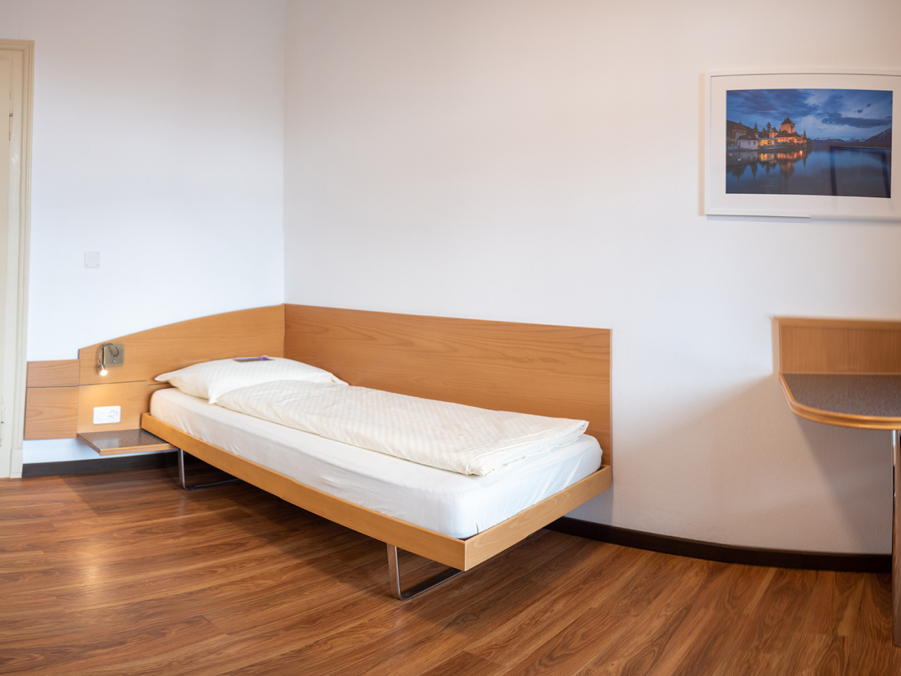- 1 Doppelzimmer mit zwei Betten, 3 Doppelzimmer mit Stockbetten, 3 Einzelzimmer, alle Zimmer sind mit Lavabo ausgestattet