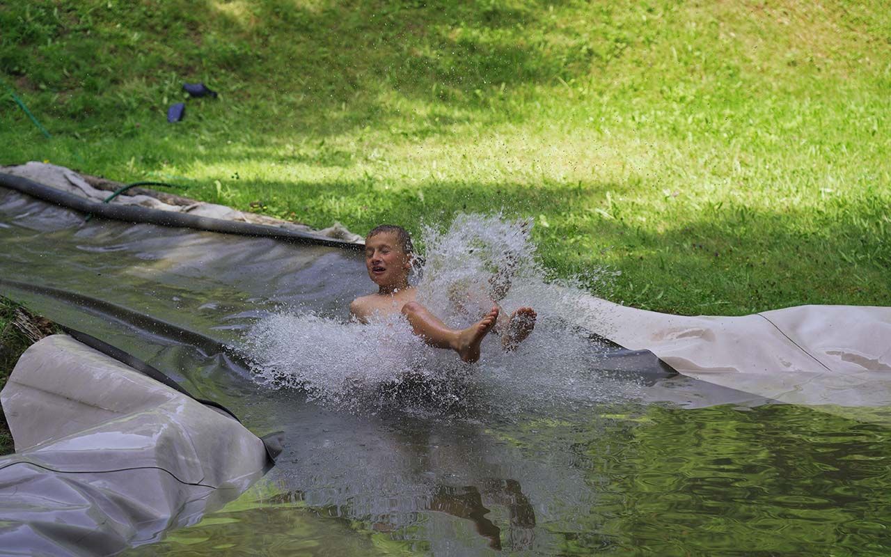 • Spielplatz mit Rutschen, Schaukeln, Spielturm und Klettergerüst